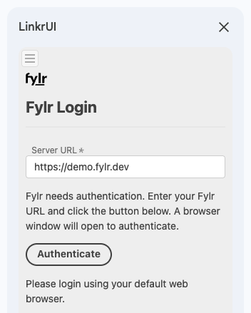 3. Provide the fylr server URL, authenticate with your login