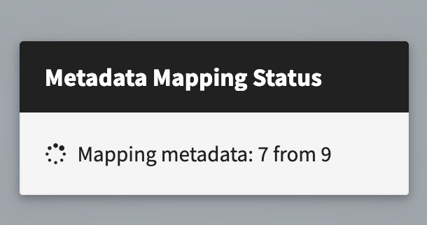 <figure><img src="https://4100607288-files.gitbook.io/~/files/v0/b/gitbook-x-prod.appspot.com/o/spaces%2FAdRFzQASDY2Elfdm3wXW%2Fuploads%2Fgit-blob-23708fe58d3891f779e03ec756ab5b120413bfcf%2FScreenshot%202025-08-21%20at%2010.10.21.png?alt=media" alt="" width="305"><figcaption><p>Metadata mapping status progress</p></figcaption></figure>